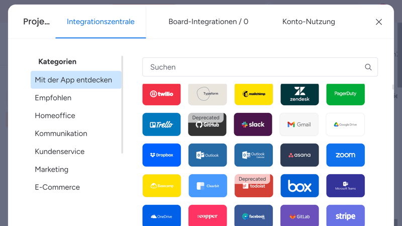 Zahlreiche Erweiterungen sorgen dafür, dass sich monday.com nahtlos in jede App-Landschaft integriert und in Zusammenarbeit mit anderen Tools nutzen lässt.