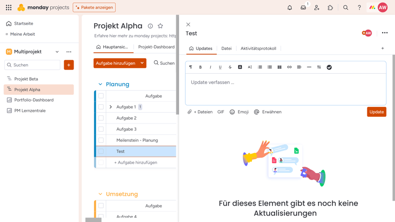 monday.com ist damit eines der Feature-stärksten Programme aus unserem Test: