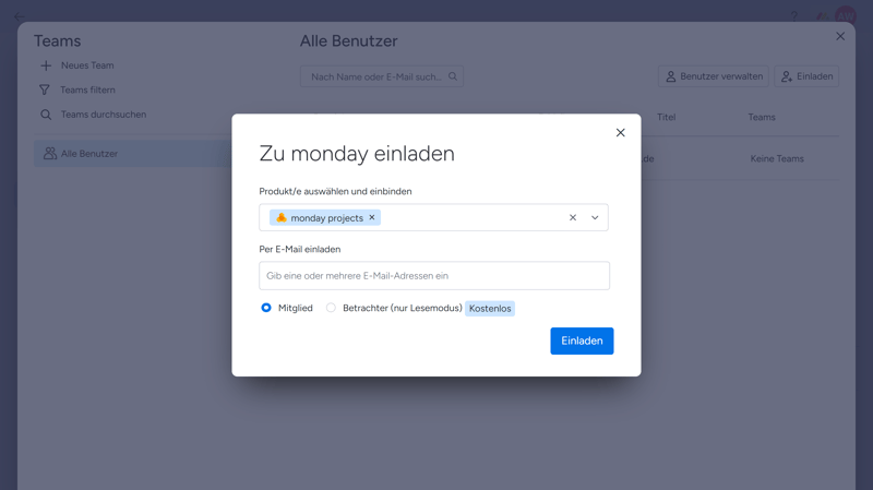 Verantwortlichkeit: Fügen Sie einen oder mehrere Verantwortliche aus dem Team hinzu, oder laden Sie neue Mitglieder direkt per Mail ein.