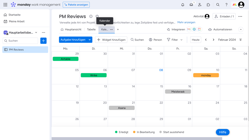 Kalender: Hier finden Sie alle Ihre Aufgaben, für die zeitliche Daten hinterlegt sind, in einer übersichtlichen Kalenderansicht. Den Kalender können Sie in der Monats-, Wochen- oder Tagesansicht anzeigen.