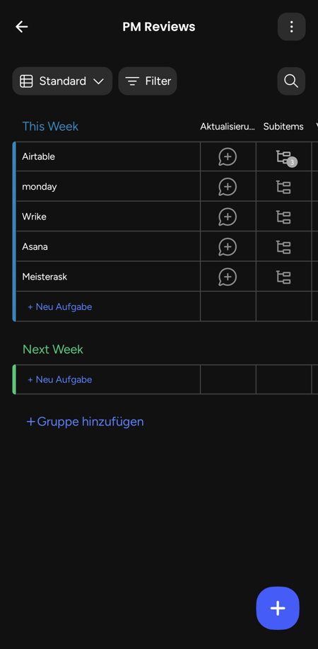Sie können Ihre monday.com-Projekte auch am Smartphone einsehen. Der Fokus liegt auf dem „Einsehen“, denn die App ist wirklich eher für die Betrachtung bereits erstellte Projekte gedacht. Es ist zwar auch möglich, neue Aufgaben & Co. unterwegs zu erstellen, doch die Bedienung ist etwas hakelig und erfordert beispielsweise in der Standardansicht viel Seitwärts-Scrollerei.