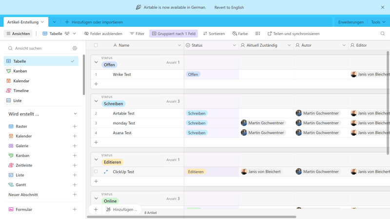 Wenn Sie eine prozessorientierte Plattform suchen, die mit wenigen Klicks eingerichtet und an standardmäßige Projektabläufe angepasst ist, ist Airtable nicht die beste Wahl. Wenn Sie hingegen eine zentrale Plattform als „Single Source of Truth“ für datenorientierte Projekte erstellen möchten, liefert Airtable eine unglaublich vielseitige Spielwiese, die auch Gratis-Nutzern viel zu bieten hat.