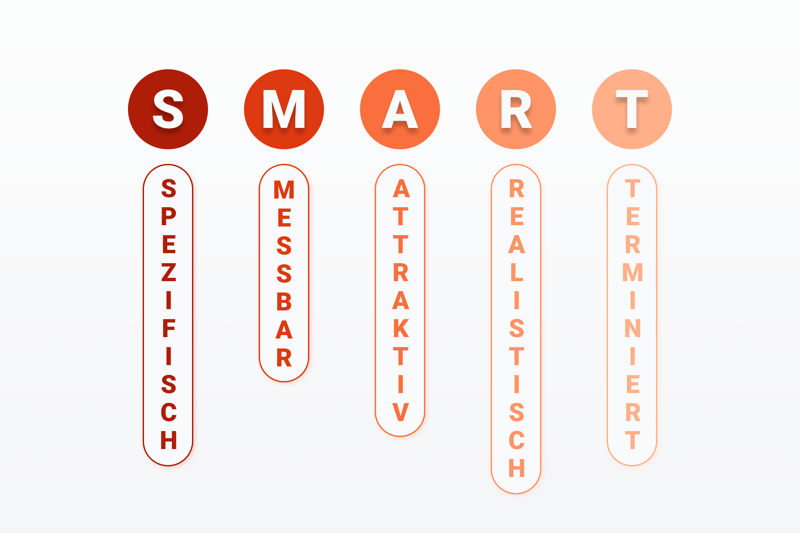 Viele Ziele scheitern an der richtigen Formulierung und Konkretisierung. Die SMART-Formel dient als Hilfsmittel bei der Zielformulierung. Durch vorgegebene Kriterien wird das Ziel spezifisch, messbar, attraktiv, realistisch und terminiert.