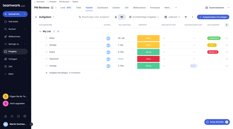Schade ist, dass die deutsche Lokalisierung noch nicht perfekt ist, weil einige Teile des Dashboards auch bei einer Umstellung auf Deutsch noch in Englisch angezeigt werden. Ein paar andere Projektmanagement-Plattformen – beispielsweise Asana oder monday.com – schaffen es zudem, ähnlich viele Funktionen in einem noch etwas zugänglicheren und weniger vollgestopften Interface bereitzustellen.