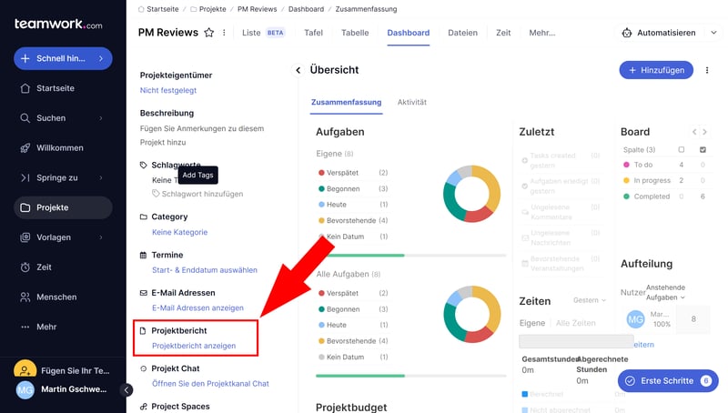 Das Teamwork-Dashboard: Alle Projekte an einem Ort