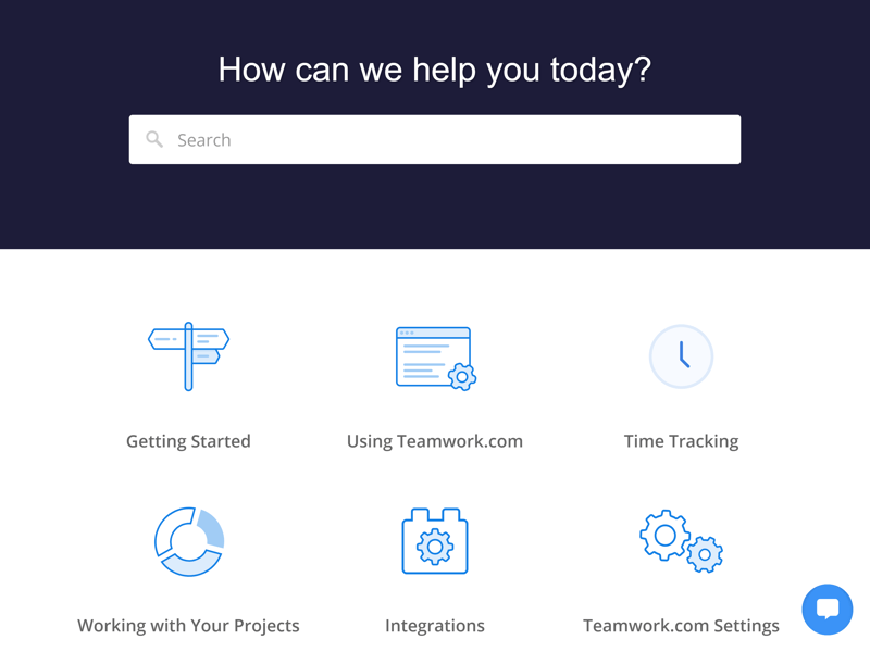 Teamwork.com hat ein umfangreiches Hilfezentrum mit vielen ausführlichen Anleitungen und Support-Artikeln, die allerdings bisher nur auf Englisch verfügbar sind. Die Artikel sind in Kategorien eingeteilt; eine Suchfunktion ist natürlich auch integriert.