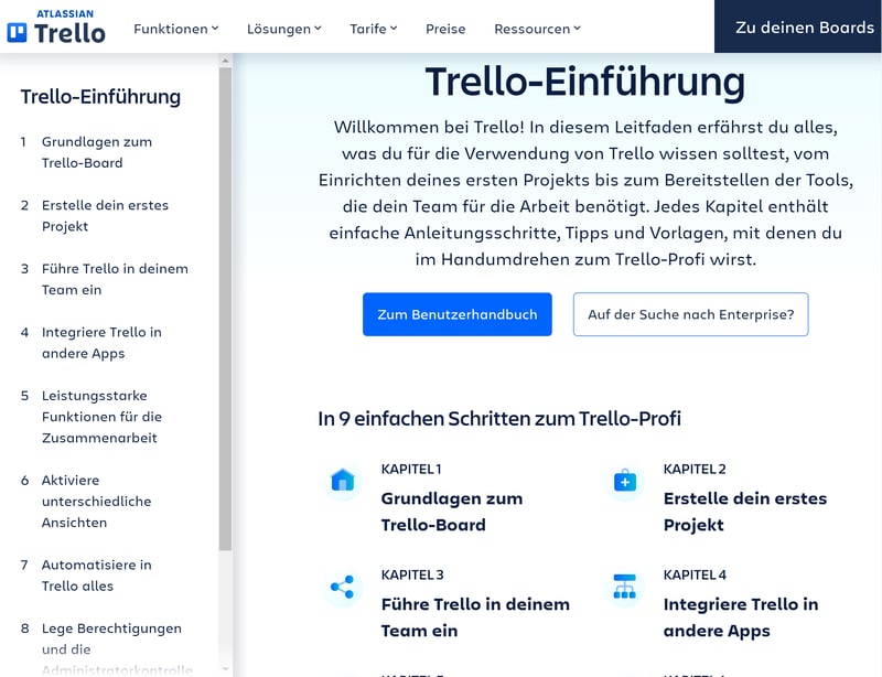 Im Support-Bereich von Trello finden Sie einen Leitfaden für Anfänger, der alle grundlegenden Funktionen vorstellt.