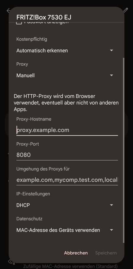 Standardmäßig ist auf Android keine Proxy-Verbindung eingestellt.