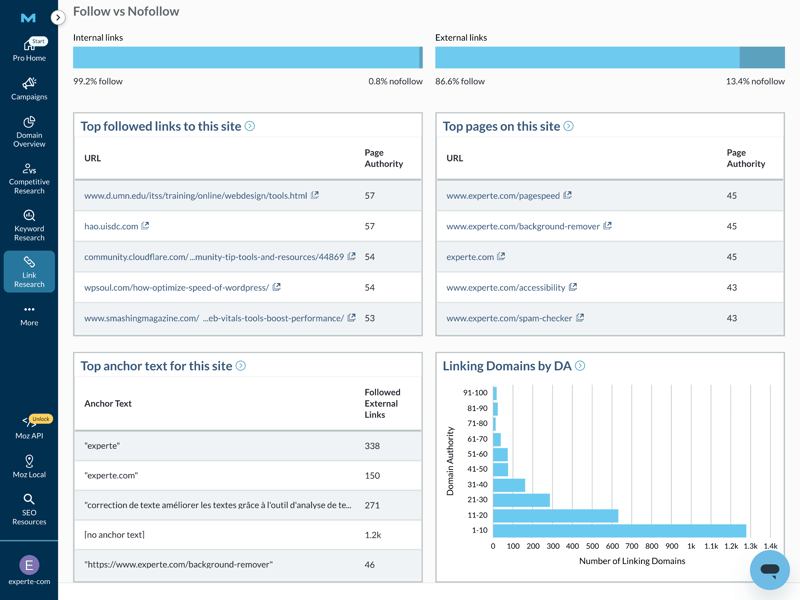Moz Pro bewegt sich irgendwo zwischen etabliertem Platzhirsch und in die Jahre gekommenem Klassiker – mit allen Vor- und Nachteilen. Die Plattform überzeugt weiterhin mit ihren bekannten Metriken wie der Domain Authority, einer sehr soliden Backlink-Datenbank sowie zuverlässigen Werkzeugen für technisches SEO, insbesondere dem Crawler und dem On-Page Grader.