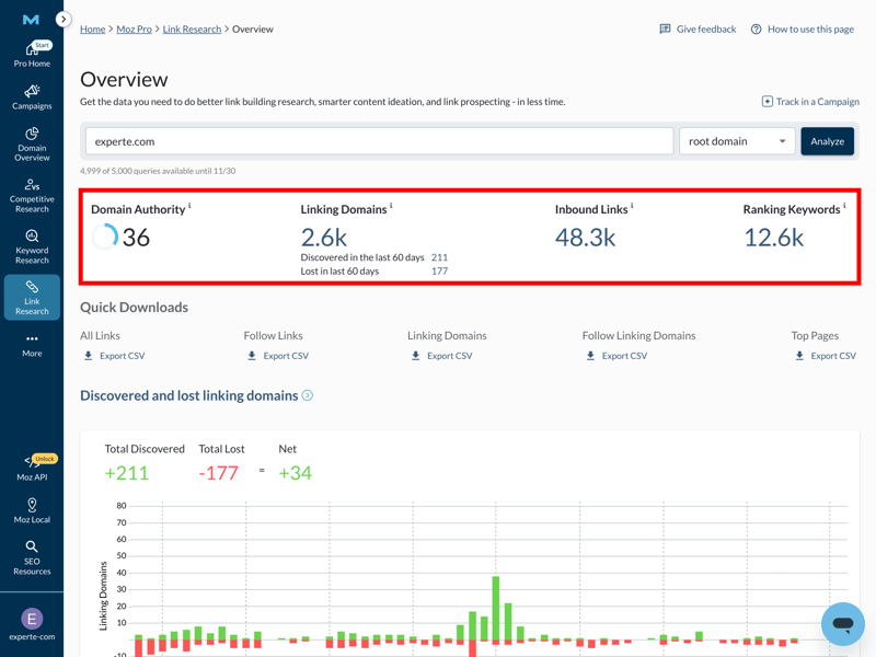 Mit der „Domain Authority“ (DA) und „Page Authority“ (PA) nutzt Moz bekannte Vergleichswerte, die in der SEO-Branche weitverbreitet sind und weltweit als Standard gelten.Großes historisches Datenarchiv