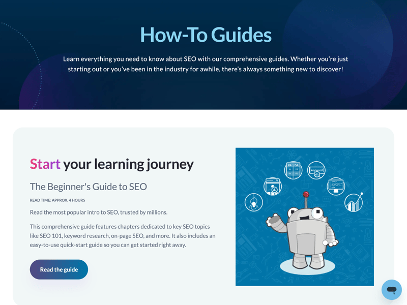 Dieser seitenlange Guide über SEO-Grundlagen ist nur eines der vielen Lernangebote von Moz.