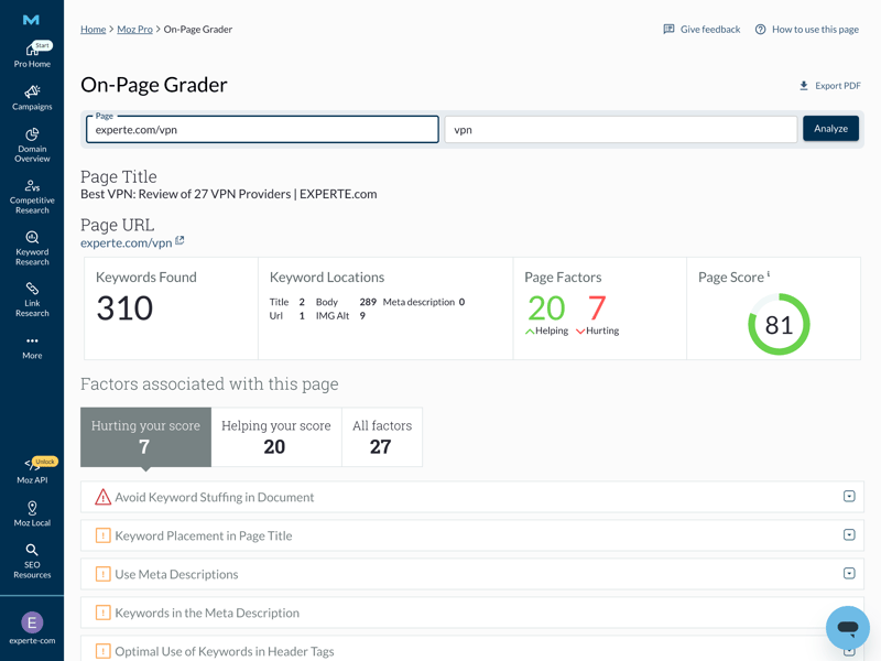 Moz Pro bietet auch abseits der SEO-Basics viele nützliche Funktionen. Besonders die technischen Tools (Crawler und On-Page Grader) sind solide Handwerkzeuge und vorwiegend für Einsteiger:innen hilfreich, da sie konkrete Handlungsanweisungen geben.