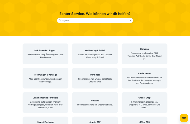 Vorbildlich ist, dass die Support-Optionen prominent auf der Startseite aufgeführt und verlinkt sind, inklusive der Öffnungszeiten für Chat und Telefon. Im Problemfall müssen Sie sich – im Gegensatz zu vielen anderen Hostern – nicht erst auf die Suche nach Kontaktmöglichkeiten machen.