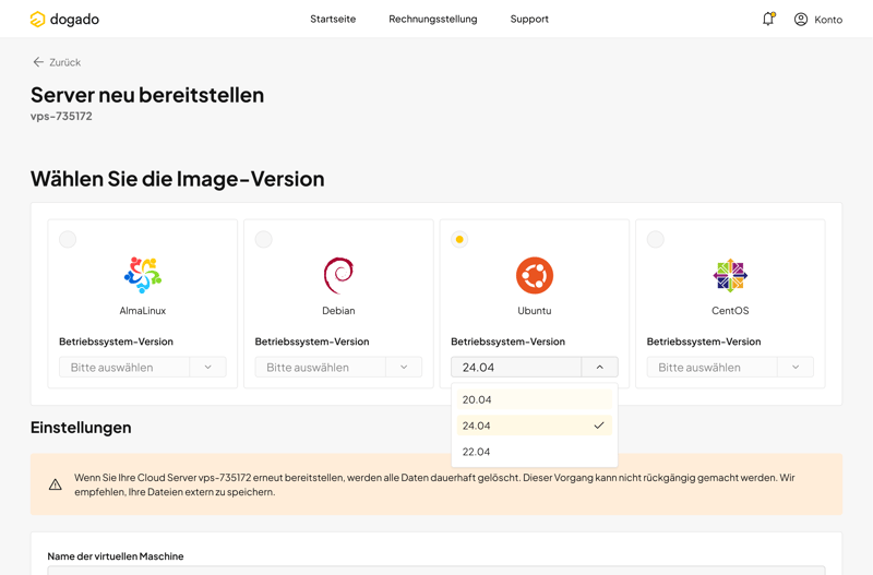 Die Einrichtung eines vServers ist bei dogado schnell erledigt, der Server steht in wenigen Minuten bereit und der Bestellprozess wirkt insgesamt angenehm unkompliziert. Auch Einsteiger sollten hier gut zurechtkommen.