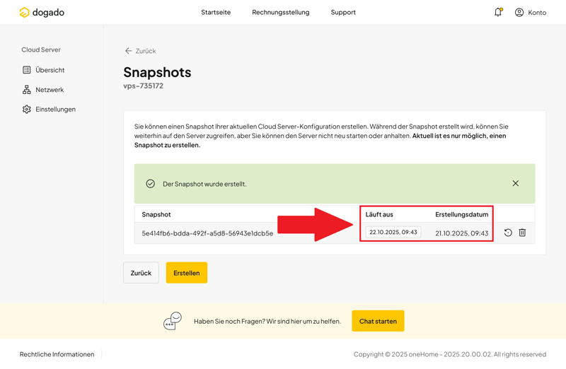 Weniger überzeugend ist der Umgang mit Snapshots: Pro vServer ist nur ein einziger Schnappschuss möglich, der nach exakt 24 Stunden automatisch gelöscht wird. Zusätzliche Snapshots oder längere Aufbewahrungszeiten sind nicht vorgesehen – selbst bei größeren Tarifen nicht.