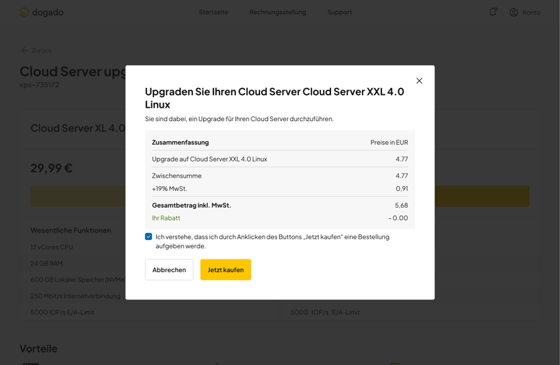 vServer-Tarif-Upgrade bei dogado.