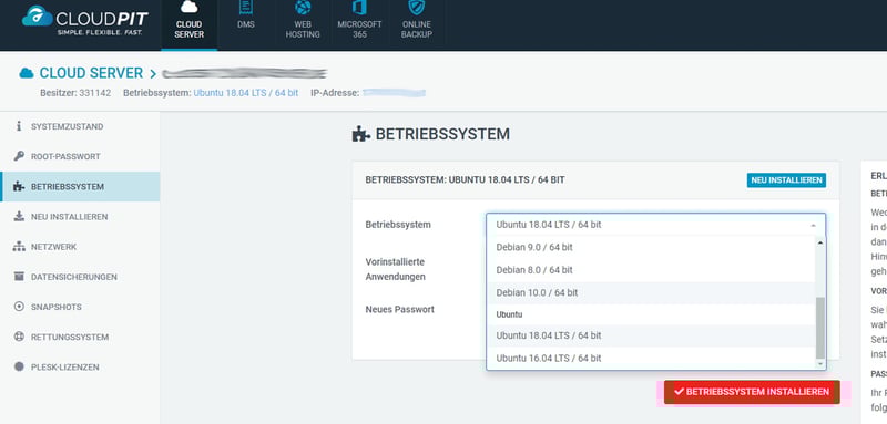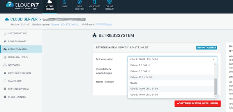 Nach Abschluss der Bestellung melden Sie sich im oneHome-Kundenportal an und richten dort Ihren vServer ein. Auf das ältere CloudPit haben Neukunden keinen Zugriff mehr.
