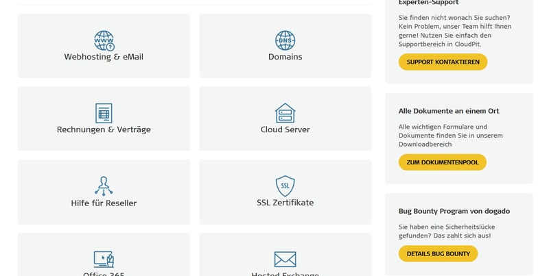 Startseite des dogado-Helpdesks.