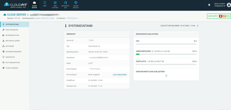 Positiv überrascht hat im Test die Bereitstellungszeit: Obwohl dogado offiziell bis zu 24 Stunden nennt, war der vServer schon nach wenigen Minuten einsatzbereit. Die Bestätigungsmail kam nach rund zwei Minuten, und etwa zehn Minuten später konnten wir uns bereits verbinden.
