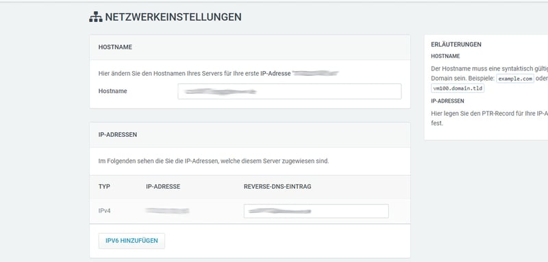Reverse-DNS-Einträge bearbeiten Sie direkt über das Dashboard. Das ist vor allem für professionelle Nutzer interessant, die dem Server eine eigene Domain zuweisen möchten. Die voreingestellten Hostnamen lassen sich schnell durch eigene Werte ersetzen.