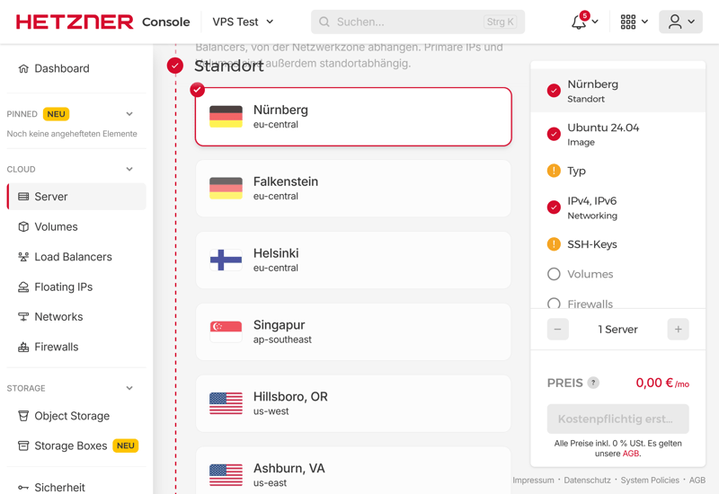 Nicht nur beim Serverstandort bietet Hetzner viel Auswahl.