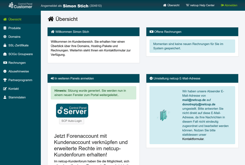Das übersichtliche Dashboard von netcup.