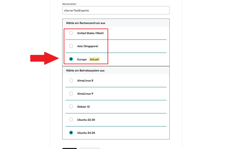 Ein Betriebssystemwechsel ist nur über eine Neubestellung möglich. Die Skalierung der Server-Hardware erfolgt ausschließlich über einen Tarifwechsel.
