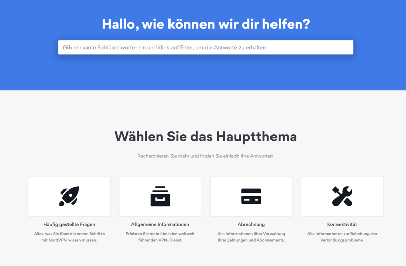 NordVPN bietet ein ausführliches Hilfecenter und einen Live-Chat