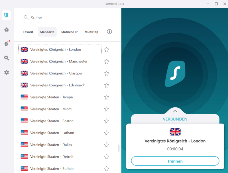 Die Clients der verschiedenen VPN-Provider machen die Verbindung ziemlich einfach: Meist genügt ein einziger Klick auf einen entsprechenden Button, um eine Verbindung zum schnellsten verfügbaren Server herzustellen. Wenn Sie einen bestimmten Server-Standort auswählen möchten, sind es nur ein paar zusätzliche Klicks.
