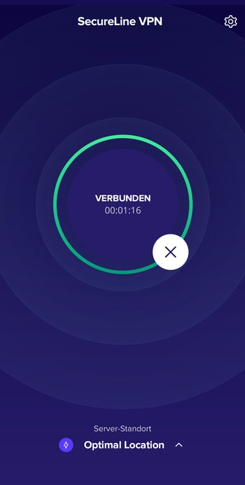Mit einem Klick auf den roten Ein/Aus-Schalter stellen Sie eine VPN-Verbindung her