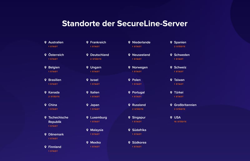 Insgesamt ist das Server-Netzwerk bisher leider unterentwickelt, denn andere Anbieter stellen wesentlich mehr Server in wesentlich mehr Ländern und Regionen zur Verfügung. Weil das SecureLine VPN bereits ein paar Jahre auf dem Buckel hat, erwarten wir auch keine drastischen Verbesserungen in naher Zukunft.