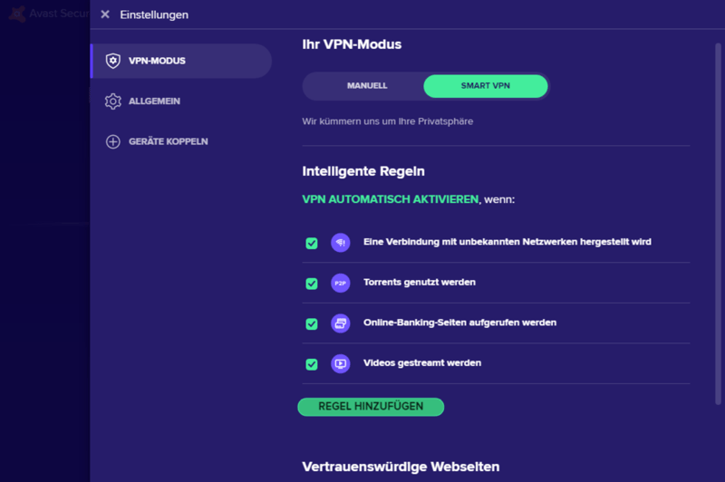Mit der Smart VPN-Funktion können Sie Ihre VPN-Verbindung personalisieren