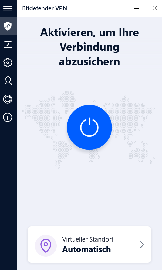 Die Bitdefender VPN-App hat das typische VPN-Bedienschema.