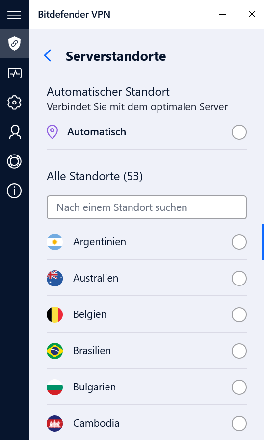 Auch auf Angaben zur Performance oder der Latenz der Server müssen Sie verzichten. Hier liefert Bitdefender VPN also wirklich nur das Nötigste.