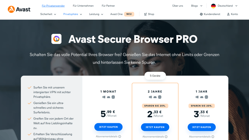 Avast ist vor allem bekannt für Antivirenprogramme und Firewalls und stellt mit dem Avast Secure Browser Pro einen Browser zur Verfügung, bei dem das Avast SecureLine VPN integriert ist. Darüber hinaus bietet Avast mit dieser kostenpflichtigen Option zahlreiche nützliche Funktionen, mit denen sich die Sicherheit zusätzlich erhöhen lässt.