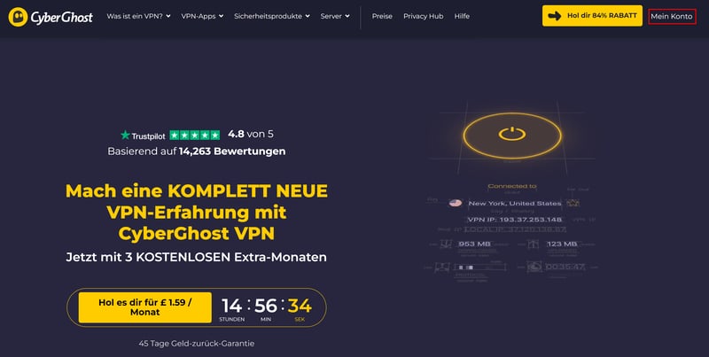 Falls Sie Ihr Monatsabo vor weniger als 14 Tagen oder ein längerfristiges Abo vor weniger als 45 Tagen abgeschlossen haben, haben Sie zudem das Recht auf eine Rückerstattung. Jene können Sie ganz einfach per Kontaktformular oder Live-Chat auf der CyberGhost-Website beantragen.