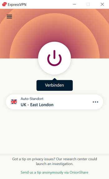 Der ExpressVPN Desktop-Client ist minimalistisch gestaltet