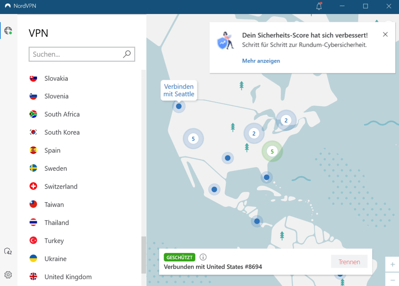 NordVPN kombiniert Performance, Benutzerfreundlichkeit und Sicherheit zum unserer Meinung nach besten VPN-Gesamtpaket auf dem Markt. Ihnen stehen dabei mehr als 5.000 Server in 60 Ländern zur Verfügung, deren IP-Adresse Sie sich ausleihen können.