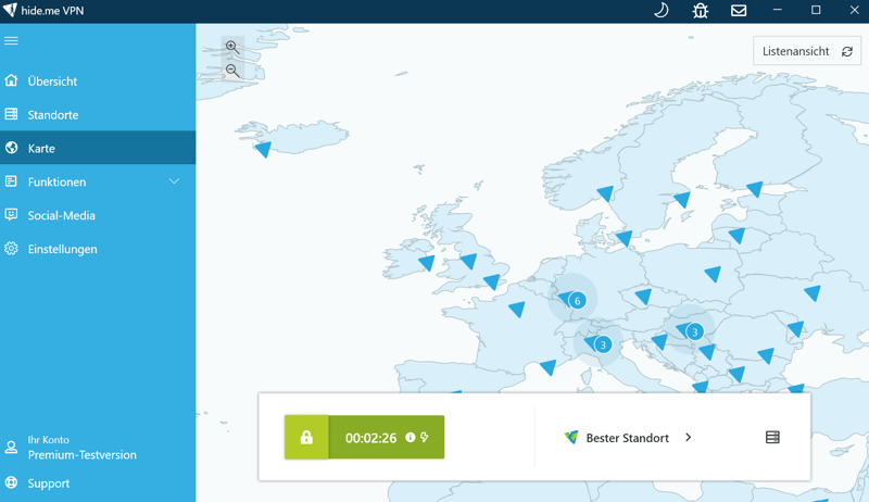 In der kostenlosen Version sind zehn Serverstandorte verfügbar: