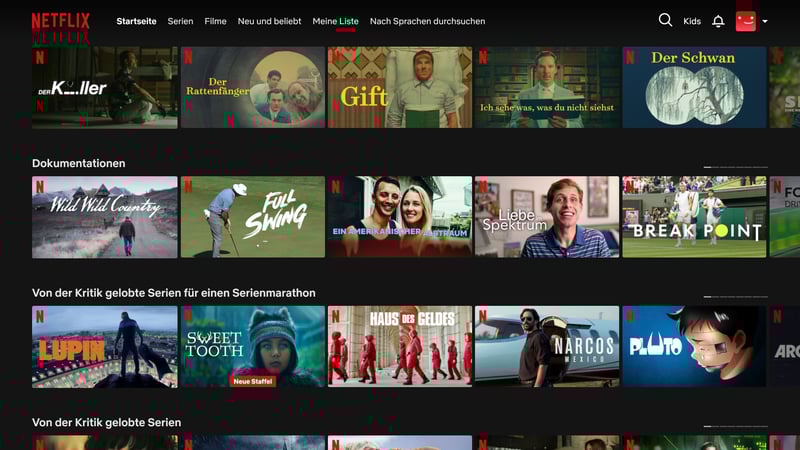 Dank VPN-Verbindung in die USA sehen wir den US-Katalog von Netflix.