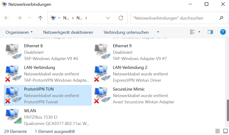 Der richtige Adapter ist der, der den Namen Ihres VPNs beinhaltet.