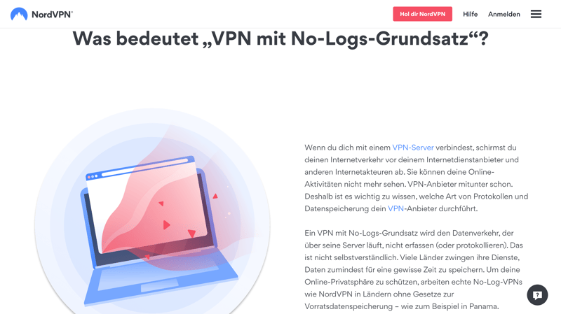 No-logs heißt nicht, dass wirklich überhaupt keine Daten gespeichert werden (Bildquelle: NordVPN).