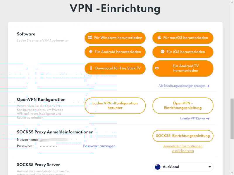 Auf der Support-Seite von PrivadoVPN finden Sie einige Gebrauchsanleitungen und FAQs. Leider sind die Artikel etwas lieblos, und Screenshots, die gerade für Anleitungen wichtig wären, gibt es nicht. Zudem ist auch der gesamte Support-Bereich (bis auf die Startseite) nur auf Englisch verfügbar.