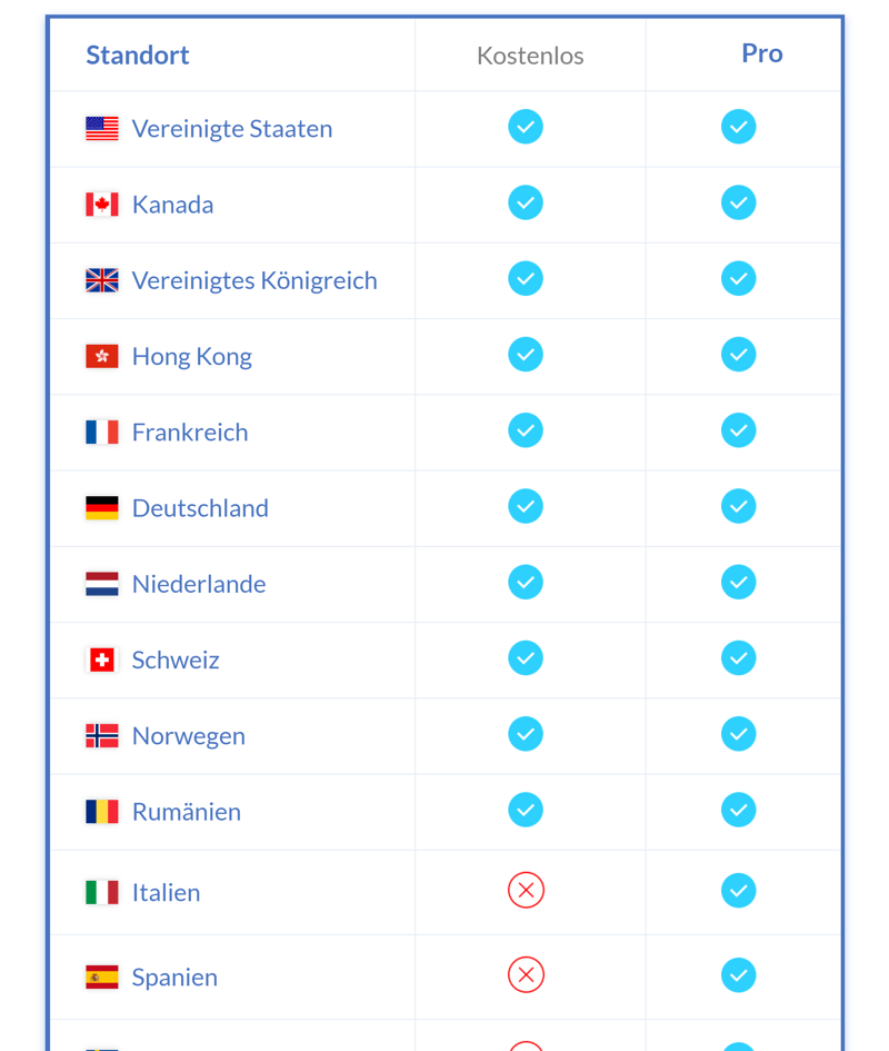 Falls Sie sich aus anderen Gründen kostenlos eine Schweizer IP zulegen möchten, ist Windscribe jedoch besonders empfehlenswert, weil das Datenlimit mit 10 GB sehr großzügig ausfällt. Neben der Schweiz können Sie zudem noch auf Server in neun anderen Standorten zugreifen: