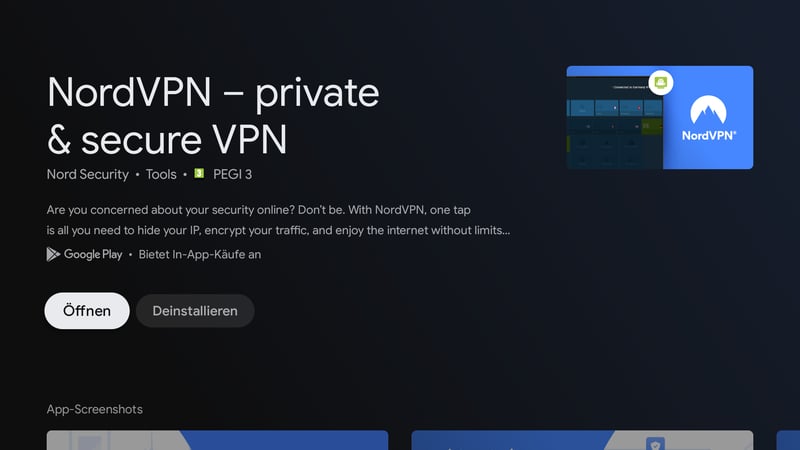 Schritt 1: Suchen Sie zunächst die VPN-App im Android TV Store und laden Sie sie mit einem Klick auf „Installieren“ herunter.