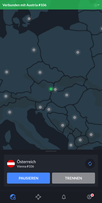 In wenigen Sekunden ist die VPN-Verbindung nach Österreich hergestellt.
