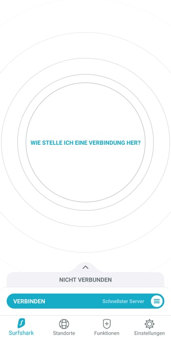 Die Smartphone-Anwendung von Surfshark ist stark an die Desktop-Version angelehnt. Die Menüpunkte sind (mit Ausnahme der Mini-Version) dieselben, nur befindet sich das Menü hier am unteren Bildschirmende. Auch alle Extra-Features wie Split Tunneling, Kill Switch, MultiHop Server und der Ablocker haben den Weg vom Desktop aufs Smartphone überlebt.