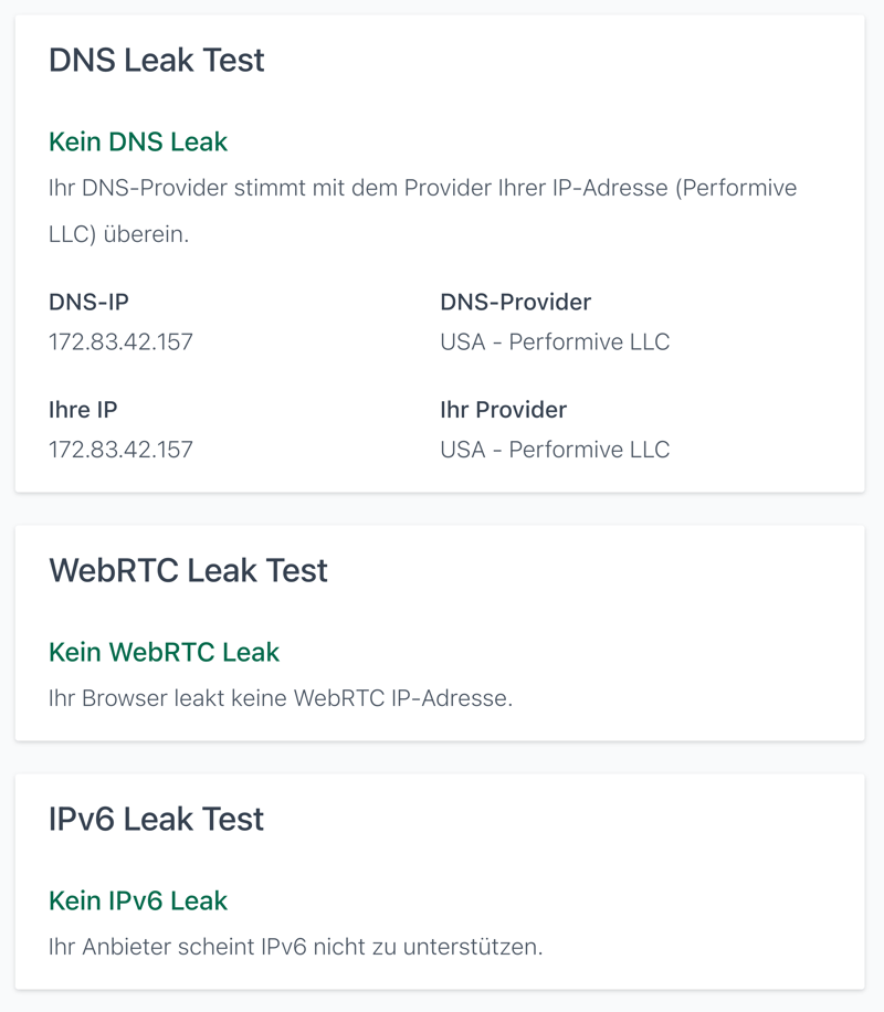 Leaks traten in unserem Test keine auf, unsere Privatsphäre war stets gesichert