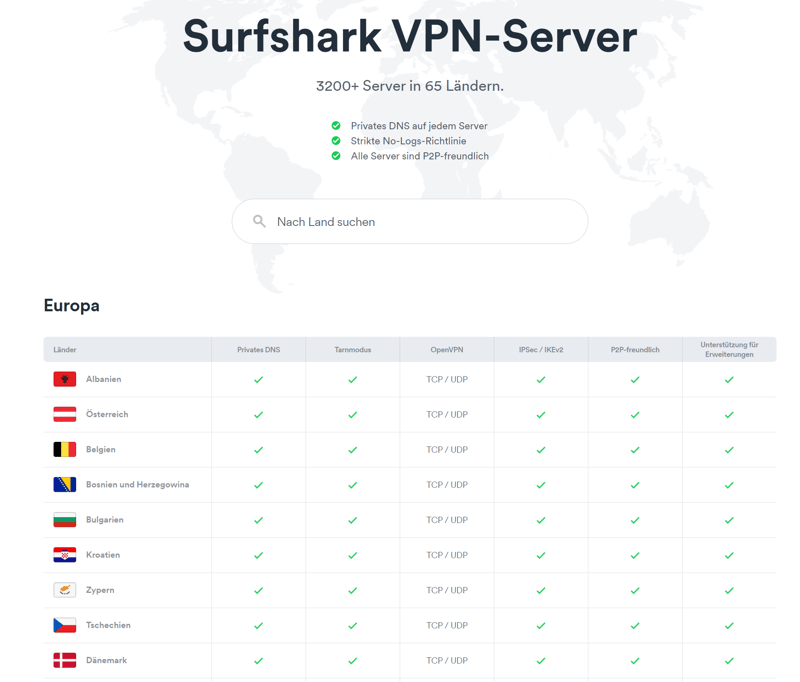 Besonders in Europa ist Surfshark an vielen Standoten vertreten