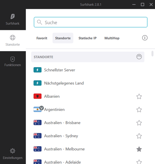 Sie können sich entweder zum schnellsten oder zum nächstgelegenen Server verbinden